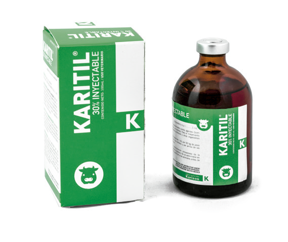 Karitil 30% Inyectable tiene una actividad predominante contra agentes Gram (+) y algunos gérmenes Gram (-) y micoplasmas. Esta indicado en bovinos para el tratamiento de la neumonía asociada a Pasteurella haemolytica, Pasteurella multocida y otros organismos susceptibles a la tilmicosina.